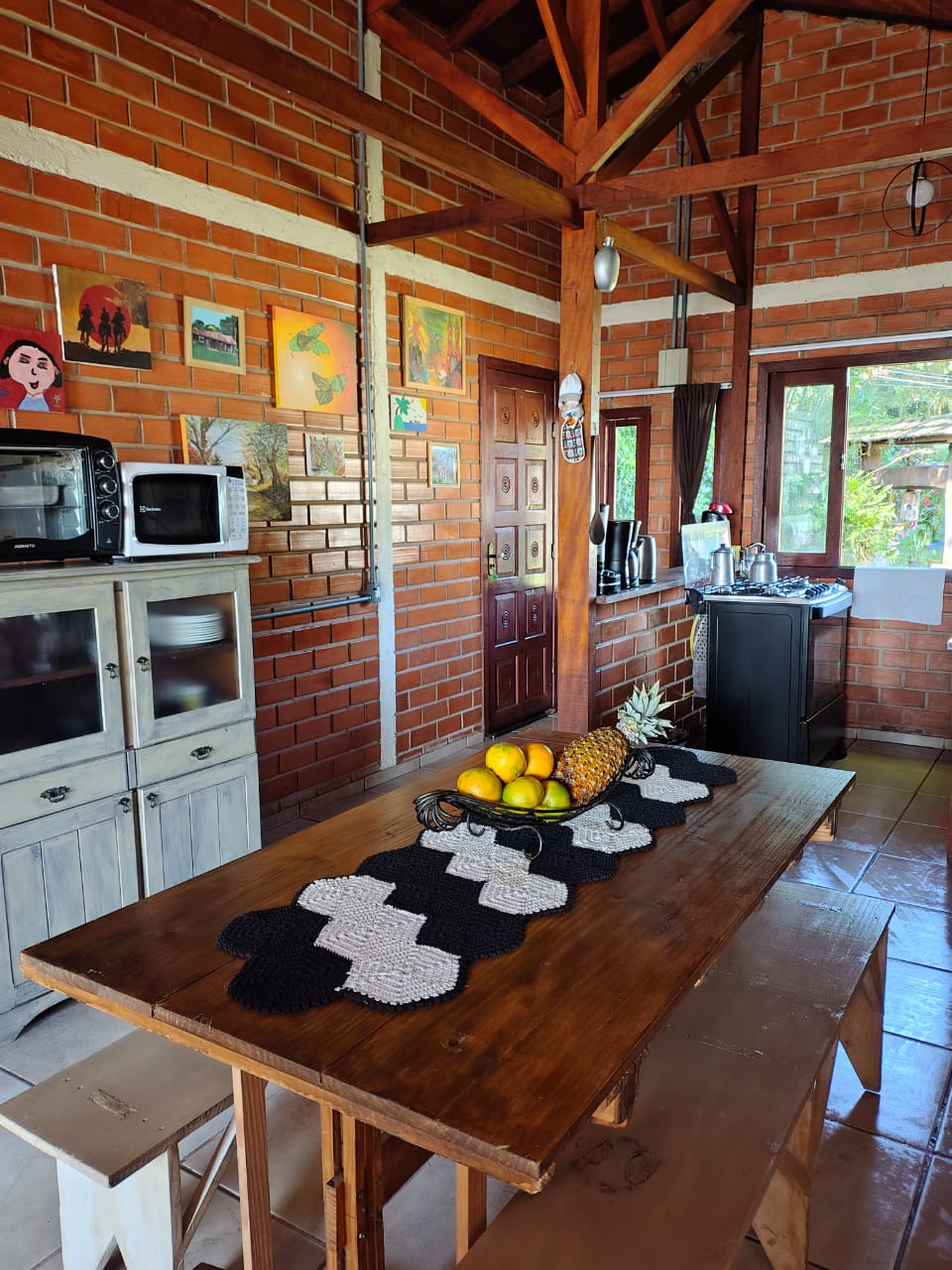 Cozinha completa com utensílios, louças e eletros, além de quartos aconchegantes com roupas de cama — tudo pronto para você chegar e se sentir em casa.